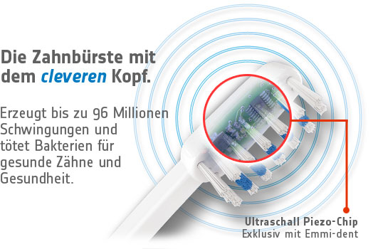 Tägliche Prophylaxe für jedermann für zuhause - durch neues Mikro-Reinigungsverfahren mit reinem Ultraschall (max. 96 Millionen Schwingungen pro Minute)